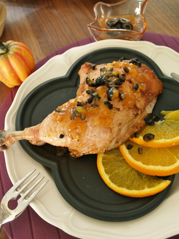 - 骨付きチキンのロースト~オレンジ・黒オリーブ・生姜の和ソース~