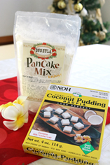 - 鍋に水を入れて沸騰させる。沸騰したら、ココナッツプディングの素を入れて、中火で滑らかになるまで混ぜる。(約1分)