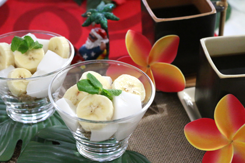 バナナの他にマンゴーやパパイヤなど、南国フルーツを乗せても雰囲気が出ます!