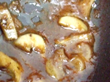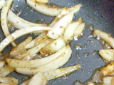 ![]() 玉ねぎがしんなりしてきたら、取り出しておいたニンニクと、しょうゆ大さじ1を入れて全体になじませながら加熱し、ソースを作る。 |
