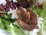 サニーレタス…葉4枚 牛もも肉…150~200g [A]リンゴジュース…50cc [A]玉ねぎ(すり下ろし)…1/2個分 [A]クレイジーソルト…適量 [A]オリーブオイル…大さじ1 |