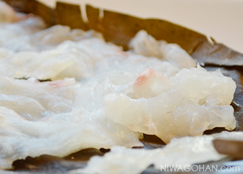 - 昆布の上に刺身用の白身魚を並べ、上から塩・こしょうをする。