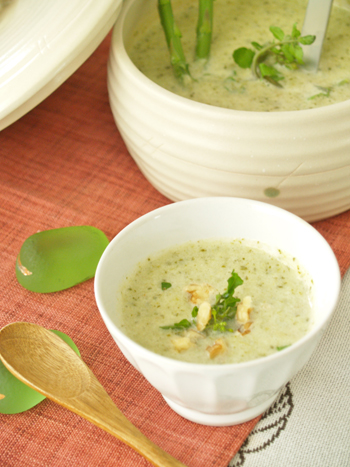 - クレソン、アスパラ、りんごとハト麦の美肌スープ